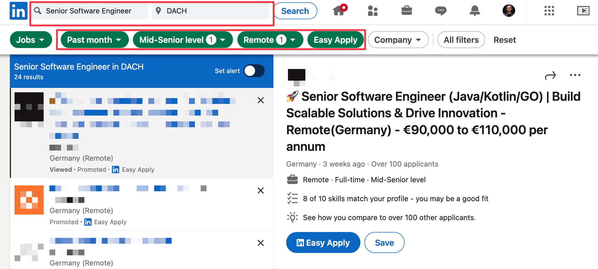 “Easy Apply” and “Remote”, at least until going through all the jobs under those filters.